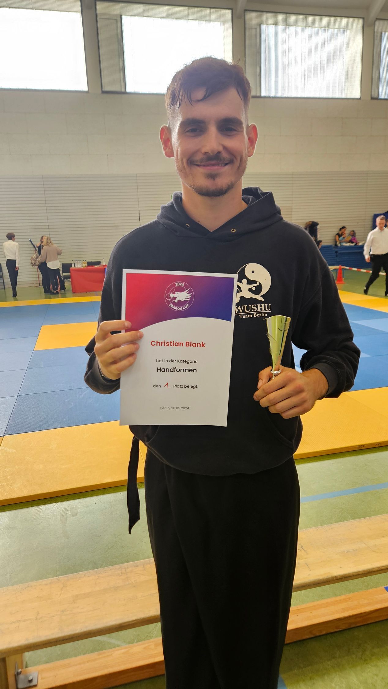 Am 09. März fand für uns der erste Wettkampf des Jahres 2024 statt. Mit insgesamt 14 Startern traten wir dieses Jahr in 17 Kategorien gegen ein Teilnehmerfeld von 345 Startern an. Wir konnten insgesamt 16. Platzierungen erlangen. Darunter neun mal den ersten Platz in Hand- und Waffenformen, sowie den Grand Champion in den Hand- und Langwaffen. Besonders freute es uns, auch, dass wir diesmal zweimal den ersten und zweimal den zweiten Platz im Vollkontakt Sanda erringen konnten. Es war uns wieder eine große Freunde, mit unserem mittlerweile recht großem Team, dabei zu sein. Wir hatten hatten alle sehr viel Spaß und freuen uns im nächsten Jahr wieder dabei zu sein. Ein großer Dank geht auch an die Organisatoren Dennis Martens vom Kung Fu Team Kladow, sowie Ralf Düsedau vom Kampfkunst Berlin Schöneweide e.V..
